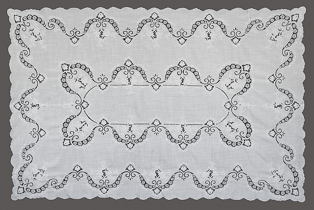 1987年赴希腊,与抽纱客商合作,就地设计花边图稿,历时一个月。
