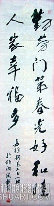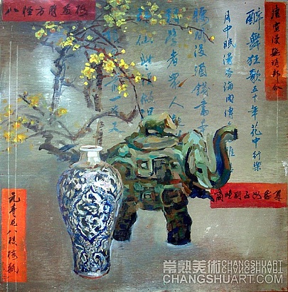 陈嘉璋 字悲喜,号双龙斋主,男,汉族,1940年5月生于江苏常熟。1958年就读于南京师范大学美术系,得到著名画家杨建侯等先生的亲授,1963年毕业后在教育天地里“勤、精、情、进”地耕耘着,培养了一批美术人地,可谓“桃李满天下”。新世纪被常熟市评为“特色文化家庭”。对山水、花鸟画色彩作了探索,画面色彩呈现艳而不俗,厚重沉着,行家称好,局外人喜欢,书法喜爱米芾、王铎一种“外拓”沉着痛快,所以作品展出刊登受到好评。近年收韩国弟子数人,传授书法及中国画。扬我民族之精神也。电话:(0512)52552375