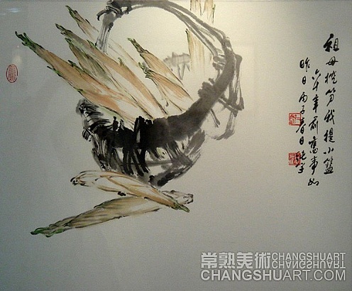 顾纯学,江苏常熟人,出身于耕读世家,现年七十四岁,作为“农桑余事”,顾纯学先生潜心诗词书画的研习与创作逾五十年不辍。取“亦耕亦读亦画”之意,先生自号“三亦楼主”,院内蔬果比色,鸡犬相唤,尽是农家气象;楼中书藏一壁,砚心未干,犹有氤氲墨香。先生曾得到王化民、沈重烟、张继馨、陆尹一、黄异庵等诗人画家指导,胸有众家而终不失农夫“已真”。三亦楼主诗书画艺于一握,题画诗文一概不取现成,或画随诗出,或诗随画至,全是胸中真情实感。先生视挂锄提笔为乐事,写生径取生活之形、质、势、写意力夺人间之精、气、神。其诗画鲜活清新,生机盎然,掬之有今朝露水,嗅之有泥土芬芳,拂之有书卷之气。