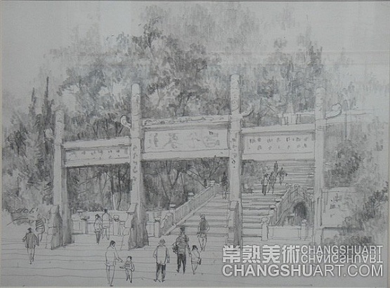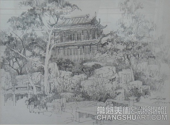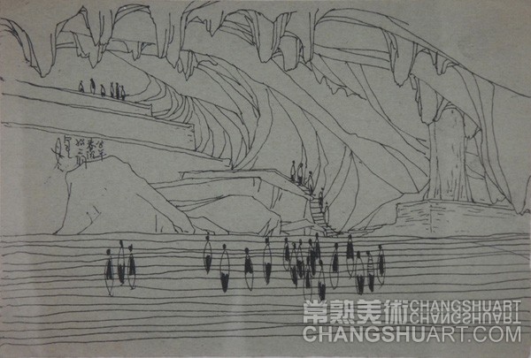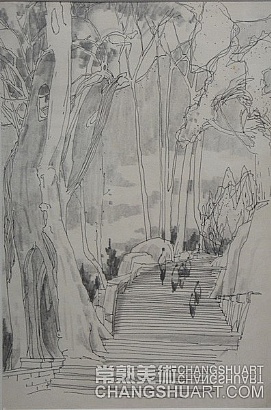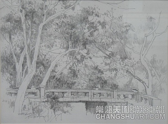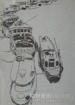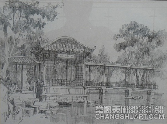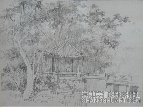 六月中旬的一天上午,在美术馆展览部的办公室,我参与选阅一位艺术家在过去三十年里所写生和创作的几百件作品。其中有基础图案的教案和课徒稿,有陶瓷器皿的图形设计和三视图的设计稿,有印染设计的画稿,有钢笔、铅笔画的风景山水的速写及铅笔画的石膏像和人像写生,有折技花卉写生和白描画稿,还有纯粹的中国画风景写生和水乡风景的创作画稿。