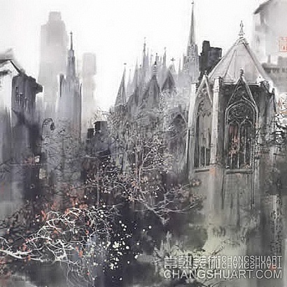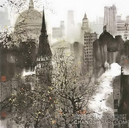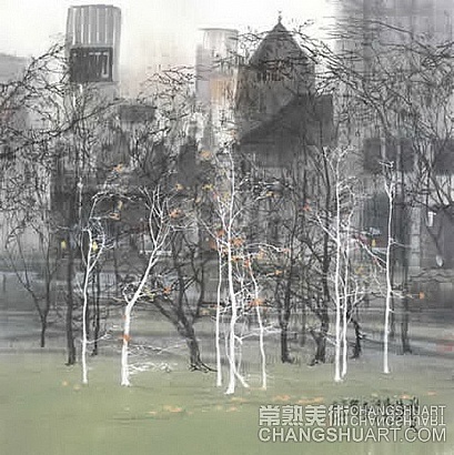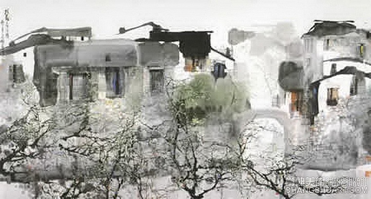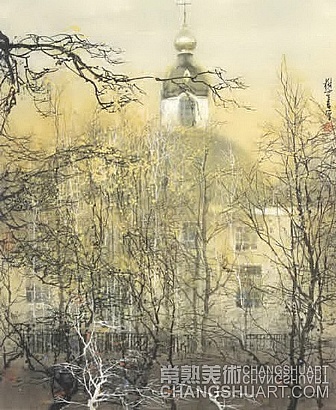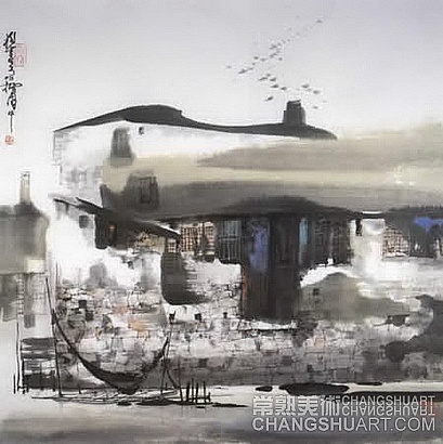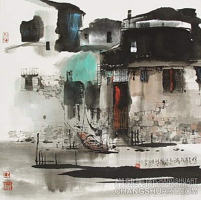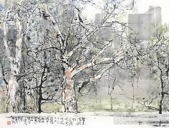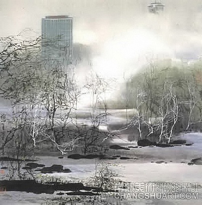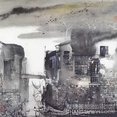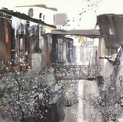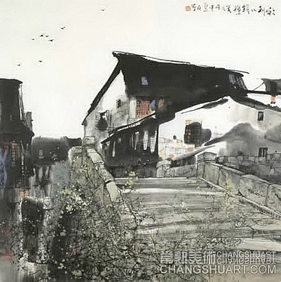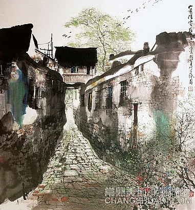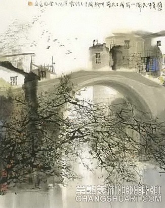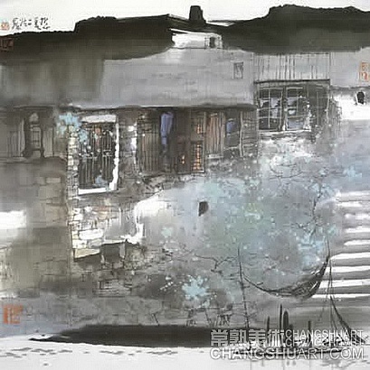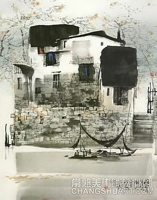 刘懋[mào] 善,1942年生,江苏苏州人,1962年毕业于苏州工艺美术专科学校。早年学习西洋画,对欧洲古典艺术大师的作品和现代印象派绘画有深刻而广泛的研究。后来转学中国画,从事山水画创作。刘懋善的山水画酣厚绵邈,写江南风光,清新朴茂,恬静抒情,别具一格,并吸收了西洋画的光、色处理方法,增强了国画的时代感,许多作品的笔墨和布局,深具传统,用笔雄浑深秀。善于通过对比、渲染和节奏的变化,精细刻画自然界的声色动静。
