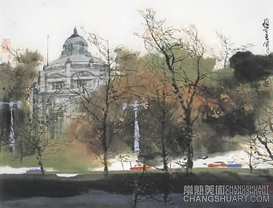 刘懋[mào] 善,1942年生,江苏苏州人,1962年毕业于苏州工艺美术专科学校。早年学习西洋画,对欧洲古典艺术大师的作品和现代印象派绘画有深刻而广泛的研究。后来转学中国画,从事山水画创作。刘懋善的山水画酣厚绵邈,写江南风光,清新朴茂,恬静抒情,别具一格,并吸收了西洋画的光、色处理方法,增强了国画的时代感,许多作品的笔墨和布局,深具传统,用笔雄浑深秀。善于通过对比、渲染和节奏的变化,精细刻画自然界的声色动静。