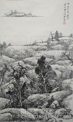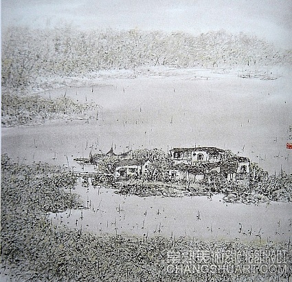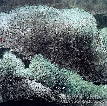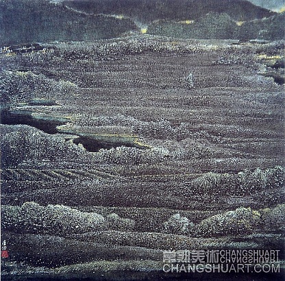 他又是一位努力圆梦的画家。唐滔少时习画得其父亲唐瘦青的启蒙,后师从海上名家唐云,后期受日本画家东山魁夷影响。他以董源、倪云林、王蒙、石涛、石谿、龚贤和虞山画派历代名家为师并得其笔意,倾心黄宾虹、傅抱石、石鲁、李可染等大师并融其艺术手法,但最使他醉心的还是生他养他爱他和与他生死不离的虞山及其“虞山画派”。