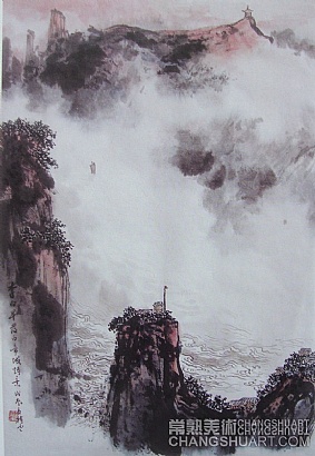钱持云(1918—2008),常熟人。自幼酷爱书画艺术,早年苦心临摹王麓台,具苍润灵秀之气,尤善淡墨中忽以中锋深墨勾勒,天趣横生,玩味无穷。而后师法黄公望、王蒙等,笔墨劲利简练,出人意表。五十岁以后畅游名山大川,深得物象的神髓、造化的天趣,后得力于石涛、八大山人、黄宾虹诸家的笔墨精神,笔墨酣畅而没有痴肥的弊病,笔力挺拔而没有剑拔弩张的霸悍。他主张学画应从老老实实开始,钻进去临古,继承前人宝贵遗产,技法熟练后,退出来再扎进生活,再加以变化,变就是开拓,就是前进。