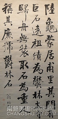 翁同龢(1830-1904),江苏常熟人,字声甫、号叔平,又号瓶生、瓶庐、松禅等。咸丰六年(1856)状元,历任户部侍郎、都察院左都御史,刑、工、户部尚书,两入军机兼总理各国事务衙门大臣,又为同治、光绪两帝师傅。其书法博采众长,于颜鲁公得法最多,且深受东坡影响。晚年采北碑之华,故其字气息淳厚、堂宇宽博。自成一家,不拘一格。徐珂《清稗类钞》中言:“书法不拘一格,为朝乾嘉后第一人”。杨守敬《学书迩言》中也云:“松禅学颜平原,老苍之至,无一稚笔,同治、光绪间推天下第一,询不诬也”。可见评誉之高。