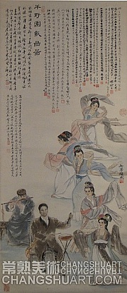 先生天资颖悟,自幼酷爱绘画,早年投拜国画大师张大千门下,潜心研习山水人物花鸟走兽,尽得其笔法,尤于墨荷形神逼肖。山水则由石涛上溯元四家,对倪云林用功至勤。共师友皆画壇名宿,时得指授切磋,又出入诸大家之门,所见名迹既多,心契神会,顿悟六法之精微,放笔自运,力追古人,画格乃益道上,而臻为神品逸品。晚年得乃师由海外题赠之画册,对泼彩泼墨法,手摹心追,仿作巨幢长郑。先生之于绘画,可谓老而弥笃矣,其书则楷书取法褚逐良,行书学李邕、倪云林、文徵明,亦写北碑,碑贴兼擅,书品与画品同。