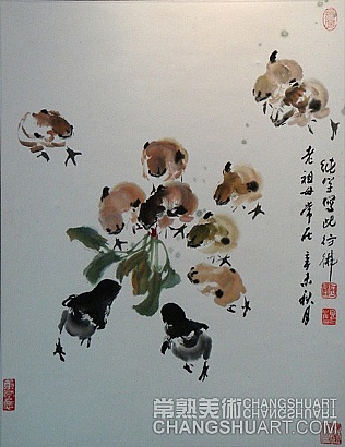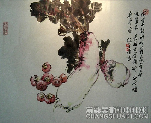 顾纯学,江苏常熟人,出身于耕读世家,现年七十四岁,作为“农桑余事”,顾纯学先生潜心诗词书画的研习与创作逾五十年不辍。取“亦耕亦读亦画”之意,先生自号“三亦楼主”,院内蔬果比色,鸡犬相唤,尽是农家气象;楼中书藏一壁,砚心未干,犹有氤氲墨香。先生曾得到王化民、沈重烟、张继馨、陆尹一、黄异庵等诗人画家指导,胸有众家而终不失农夫“已真”。三亦楼主诗书画艺于一握,题画诗文一概不取现成,或画随诗出,或诗随画至,全是胸中真情实感。先生视挂锄提笔为乐事,写生径取生活之形、质、势、写意力夺人间之精、气、神。其诗画鲜活清新,生机盎然,掬之有今朝露水,嗅之有泥土芬芳,拂之有书卷之气。