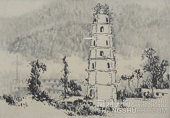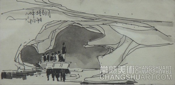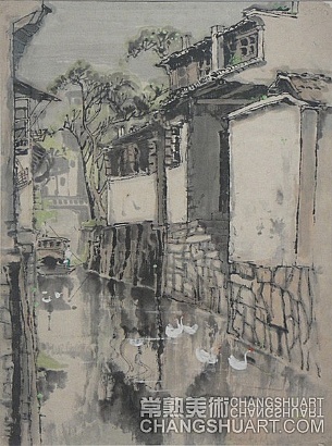 六月中旬的一天上午,在美术馆展览部的办公室,我参与选阅一位艺术家在过去三十年里所写生和创作的几百件作品。其中有基础图案的教案和课徒稿,有陶瓷器皿的图形设计和三视图的设计稿,有印染设计的画稿,有钢笔、铅笔画的风景山水的速写及铅笔画的石膏像和人像写生,有折技花卉写生和白描画稿,还有纯粹的中国画风景写生和水乡风景的创作画稿。