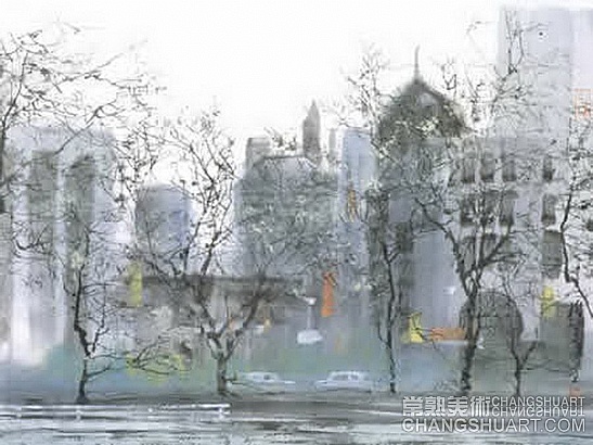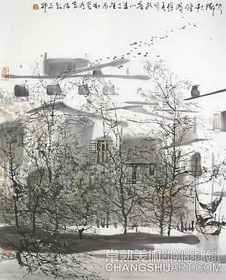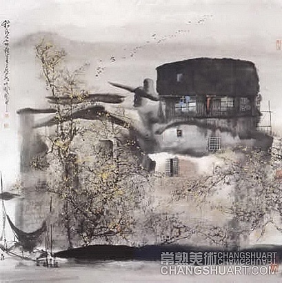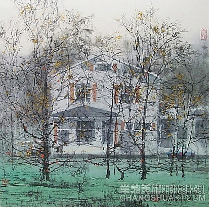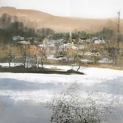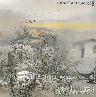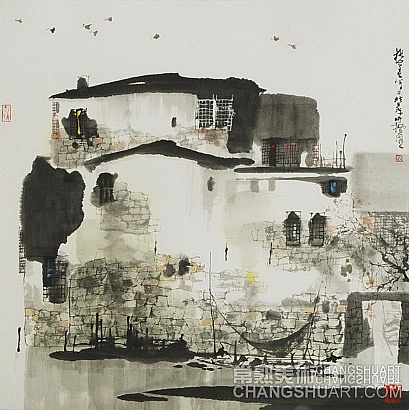 刘懋[mào] 善,1942年生,江苏苏州人,1962年毕业于苏州工艺美术专科学校。早年学习西洋画,对欧洲古典艺术大师的作品和现代印象派绘画有深刻而广泛的研究。后来转学中国画,从事山水画创作。刘懋善的山水画酣厚绵邈,写江南风光,清新朴茂,恬静抒情,别具一格,并吸收了西洋画的光、色处理方法,增强了国画的时代感,许多作品的笔墨和布局,深具传统,用笔雄浑深秀。善于通过对比、渲染和节奏的变化,精细刻画自然界的声色动静。