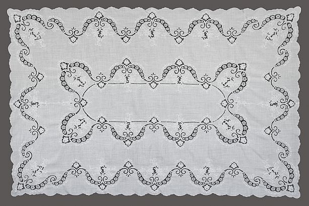 1987年赴希腊,与抽纱客商合作,就地设计花边图稿,历时一个月。