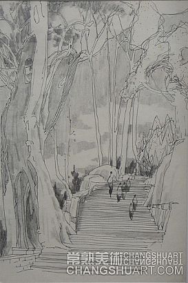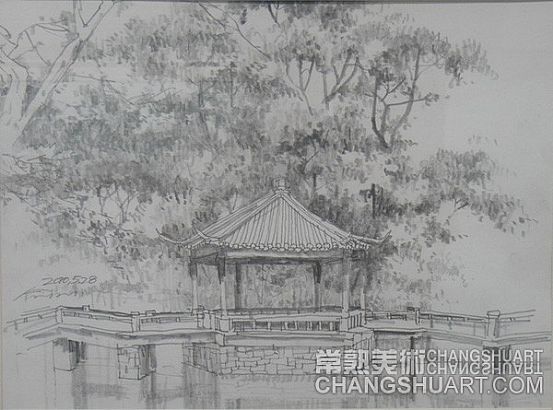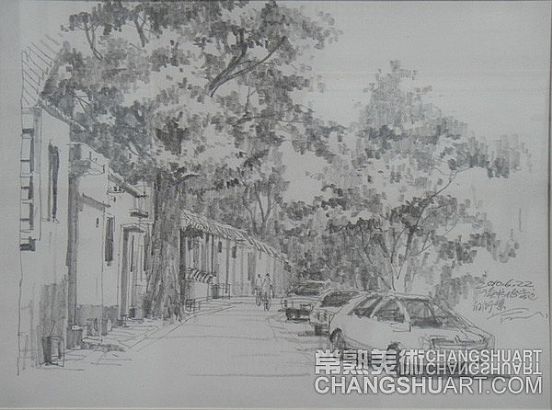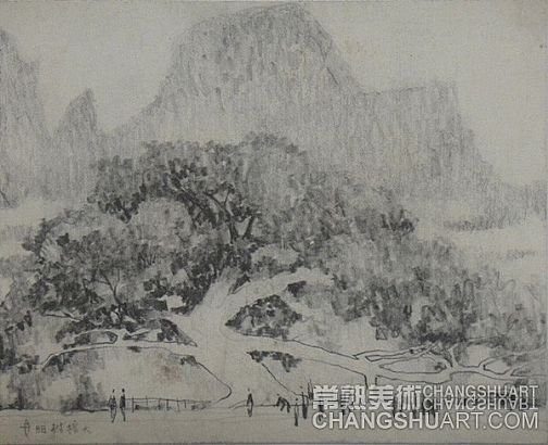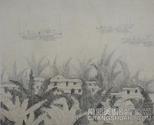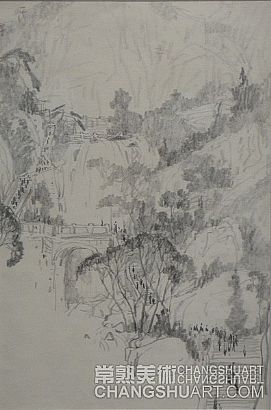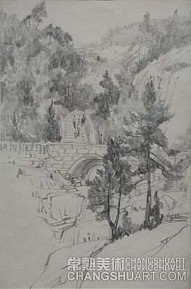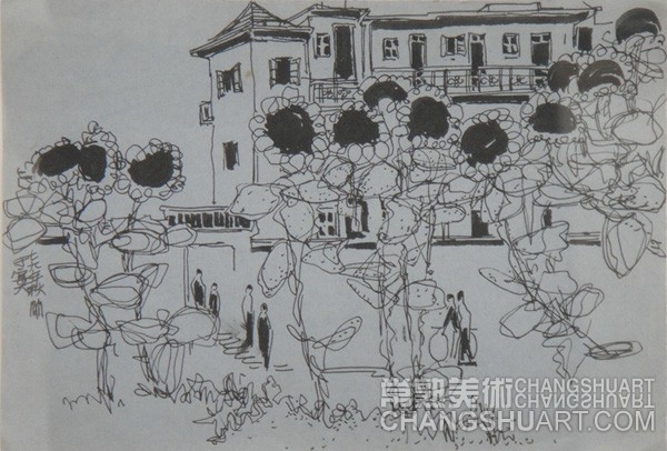 六月中旬的一天上午,在美术馆展览部的办公室,我参与选阅一位艺术家在过去三十年里所写生和创作的几百件作品。其中有基础图案的教案和课徒稿,有陶瓷器皿的图形设计和三视图的设计稿,有印染设计的画稿,有钢笔、铅笔画的风景山水的速写及铅笔画的石膏像和人像写生,有折技花卉写生和白描画稿,还有纯粹的中国画风景写生和水乡风景的创作画稿。