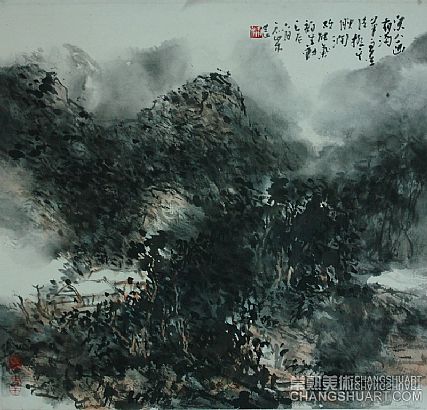 又名戬罡,1962年生于江苏常熟。常熟市书画院副院长、山水画研究所所长。